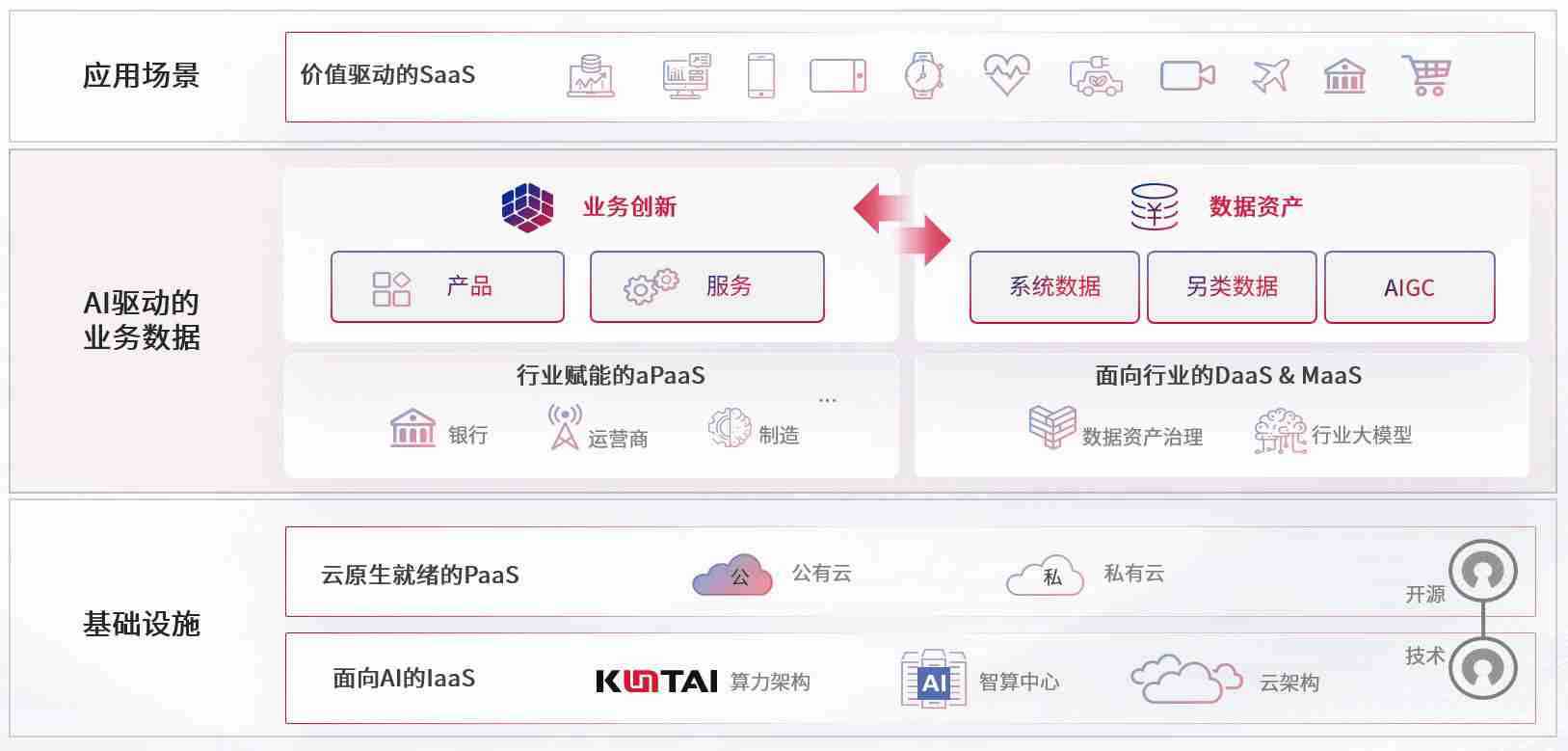 数字时代,,,,围绕企业数字化转型的关键要素,,,Z6尊龙时凯数码开创性的提出数云融合战略和技术体系框架,,,着力在云原生、、、数字原生、、、、AI原生和信创产业上架构产品和服务能力,,,,为处在不同数字化转型阶段的快消零售、、、汽车、、、、金融、、、、医疗、、、、政企、、教育、、、运营商等行业客户提供泛在的敏捷IT能力和融合的数据驱动能力,,构建跨界融合创新的数字业务场景和新业务模式,,,,助力企业级客户建立面向未来的核心能力和竞争优势,,全面推动社会的数字化、、智能化转型升级。。