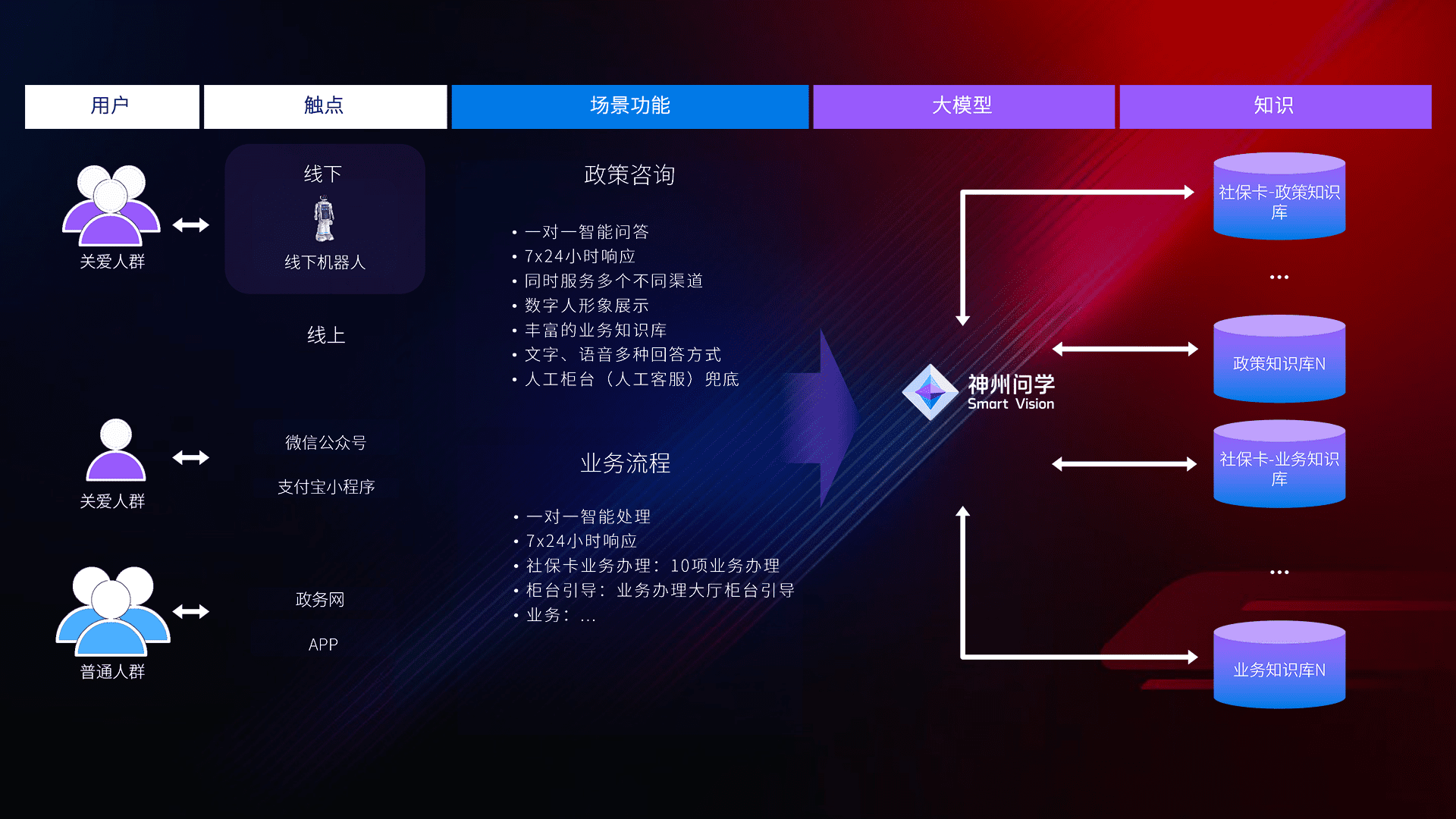 • 线上线下全覆盖:线上提供微信公众号、、支付宝小程序、、政务网、、、、app多种渠道,,与线下机器人形成完整服务体系。。。